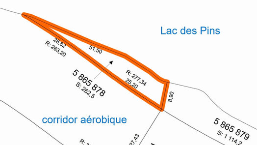 Seulement 4 terrains privés se trouve sur une distance de 1 km longeant le corridor aérobique et le Lac des Pins.